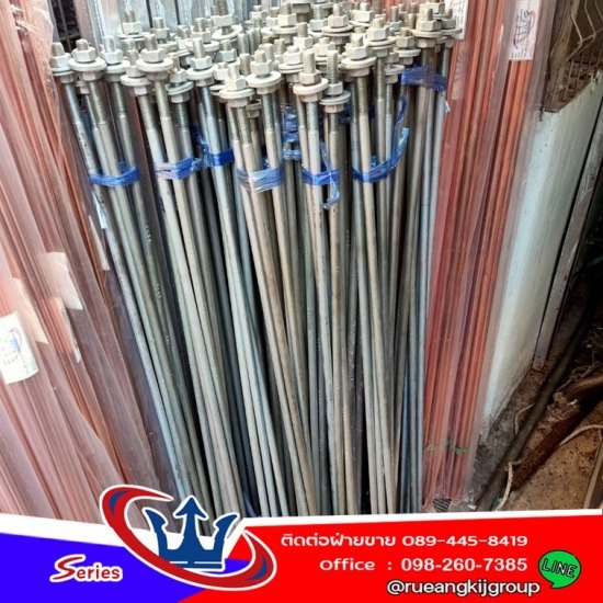 ผู้ผลิต-ขายส่ง กราวด์หรอด ราคาถูก ผู้ผลิตแท่งกราวด์หรอด ตราซีรี่ส์ (Series’s ground rod) จำหน่ายส่งกราวด์หรอดยกมัด ราคาส่ง ขนาดเส้นผ่าศูนย์กลาง 3/8นิ้ว, 1/2นิ้ว, 5/8นิ้ว ความยาว 30ซม., 50ซม. 100ซม.และ 180ซม. 240ซม. และ 300ซม. ผลิตและขายส่งกราวด์หรอดมะเฟือง หรือ แท่งกราวด์มะเฟือง ให้บริการ จัดส่ง อุปกรณ์ควบเสาไฟฟ้าและกราวด์หรอด ตราซี...